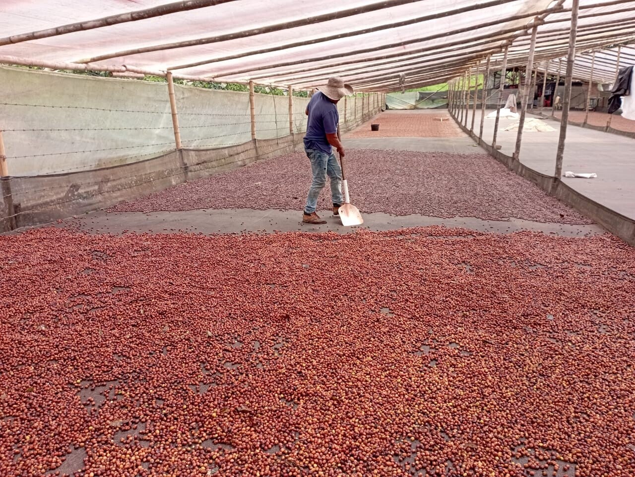 This lot undergoes a distinctive fermentation process. The coffee begins with a 60-hour fermentation in whole cherry, followed by pulping and a 30-hour oxidation stage. A mosto inoculum with yeast is then introduced, allowing the coffee to ferment for an additional 72 hours. Finally, the beans are dried under sunlight and finished with mechanical drying, ensuring stability while preserving the expressive character of the Borbón Rosado variety.